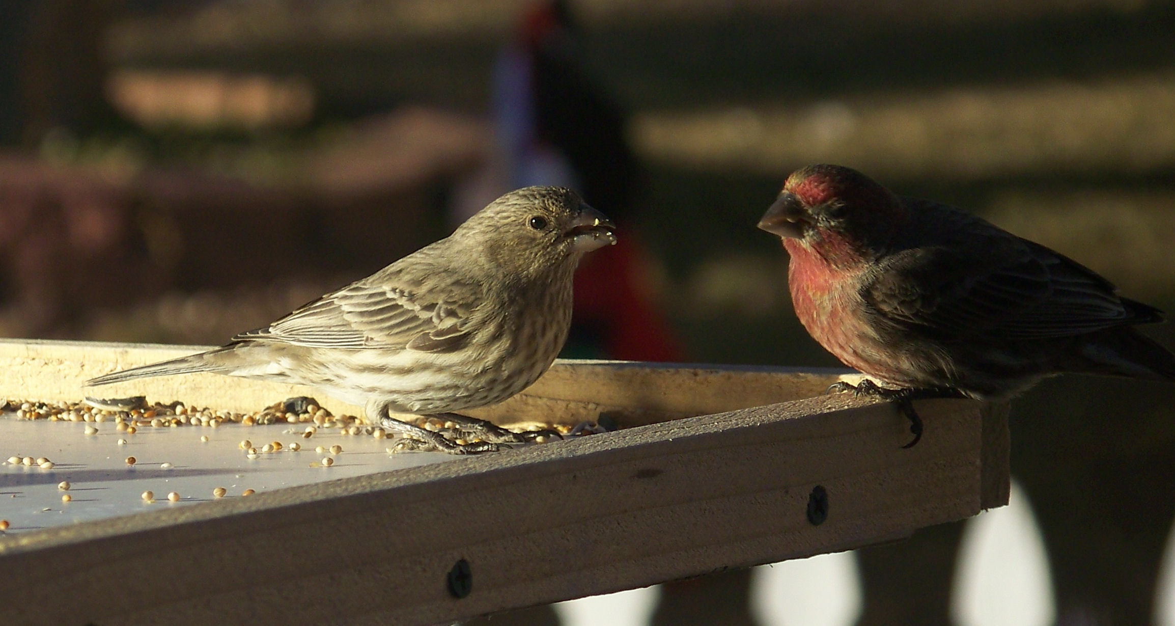 | A male and female House Finch.