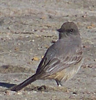 | This Say's Phoebe spent quite a bit of time beside the firing line at the Ben Lomond Gun Club's high power shooting range in Elbert county, Colorado on 24 June 2011. It did not seem to mind the shooting, even a big .50 caliber rifle. It has something in it's beak, maybe some seed pods. | ![]() |