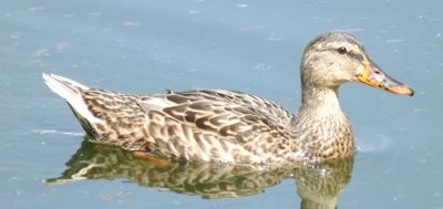 The second picture is of a female Mallard, found at the Fountain Creek Nature center on 8 August 2009. She stayed by the side of a pond, and for several days I could walk within a few feet of her, and as long as I kept walking, she did not mind. Here is www.youtube.com/watch?v=o5UMBGd8p9w a video of a Mallard filmed on 21 May 2011 at the Fountain Creek Regional Park, Colorado.