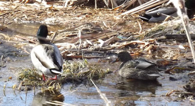 The second picture was taken on 18 January 2010 at the same pond. The full picture also includes two Belted Kingfishers. The third picture is of another male, and was taken on 2 March 2010 at the same place.
