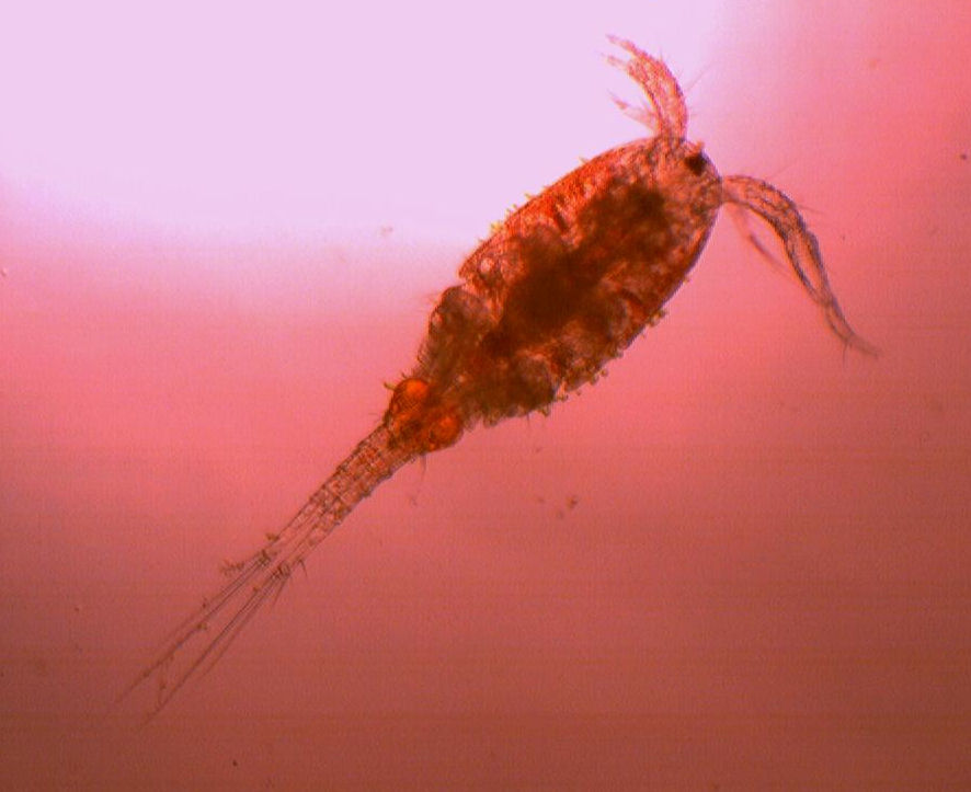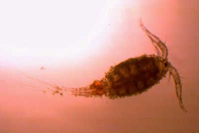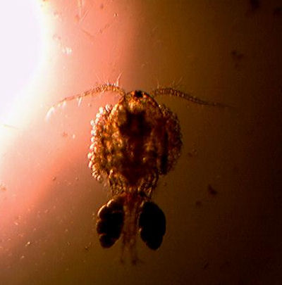 This is a female, and is carrying eggs in the two small sacks. The picture was taken through a microsope, x100 magnification.